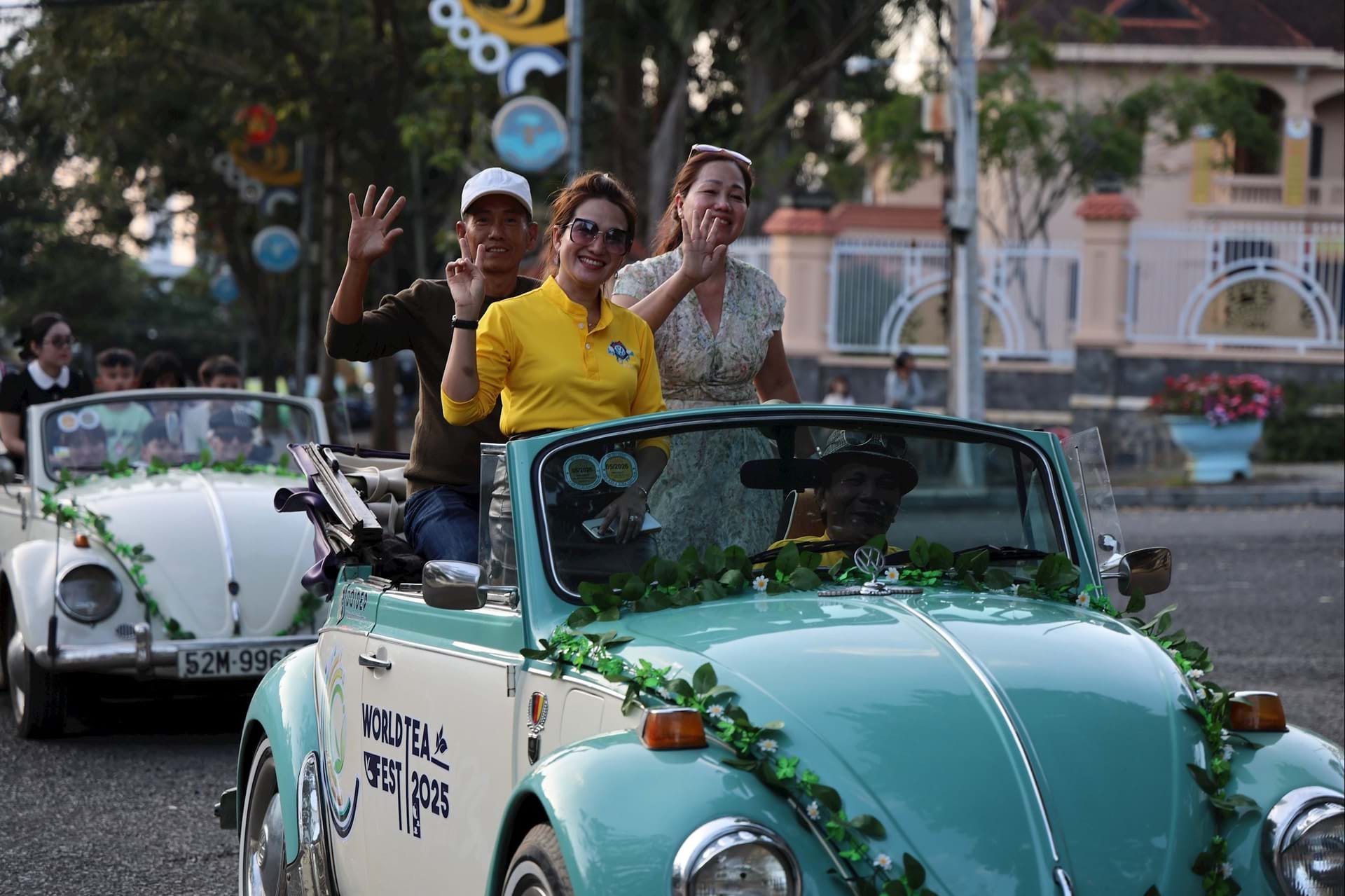 Dàn xe cổ thập niên 1950 - 1970 xuất hiện ấn tượng trong sắc màu trang trí chủ đề trà Việt. Ảnh: Ảnh: Báo Lâm Đồng